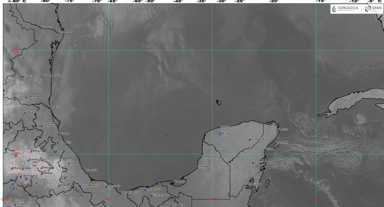 Este miércoles 19 de marzo un sistema de alta presión localizado sobre el noreste del Golfo de México, mantendrá el flujo de viento del este y sureste sobre la Península de Yucatán y el estado de Quintana Roo, cielo despejado a parcialmente nublado, poca probabilidad de lluvias, ambiente muy caluroso durante el día y fresco