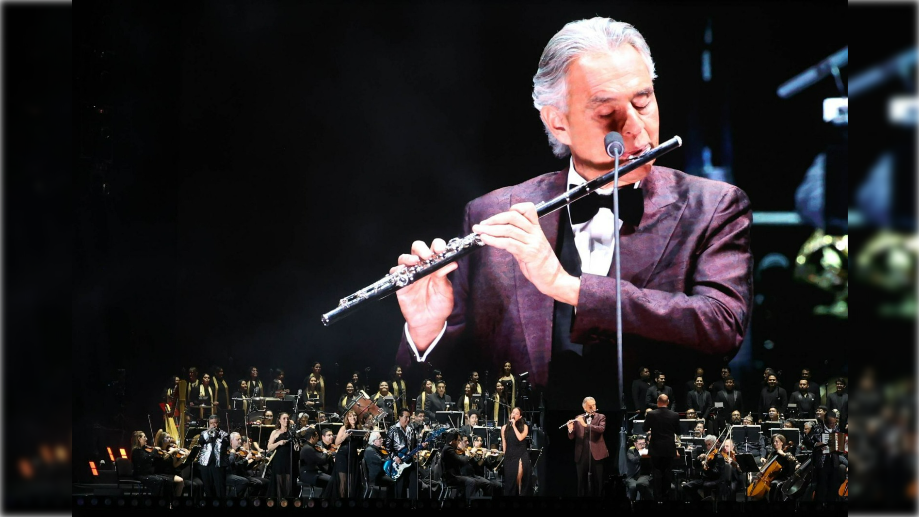 Acompañado por la Orquesta Sinfónica de Minería, el tenor italiano Andrea Bocelli compartió el escenario con invitados especiales: el grupo Los Ángeles Azules y la cantautora Ximena Sariñana.