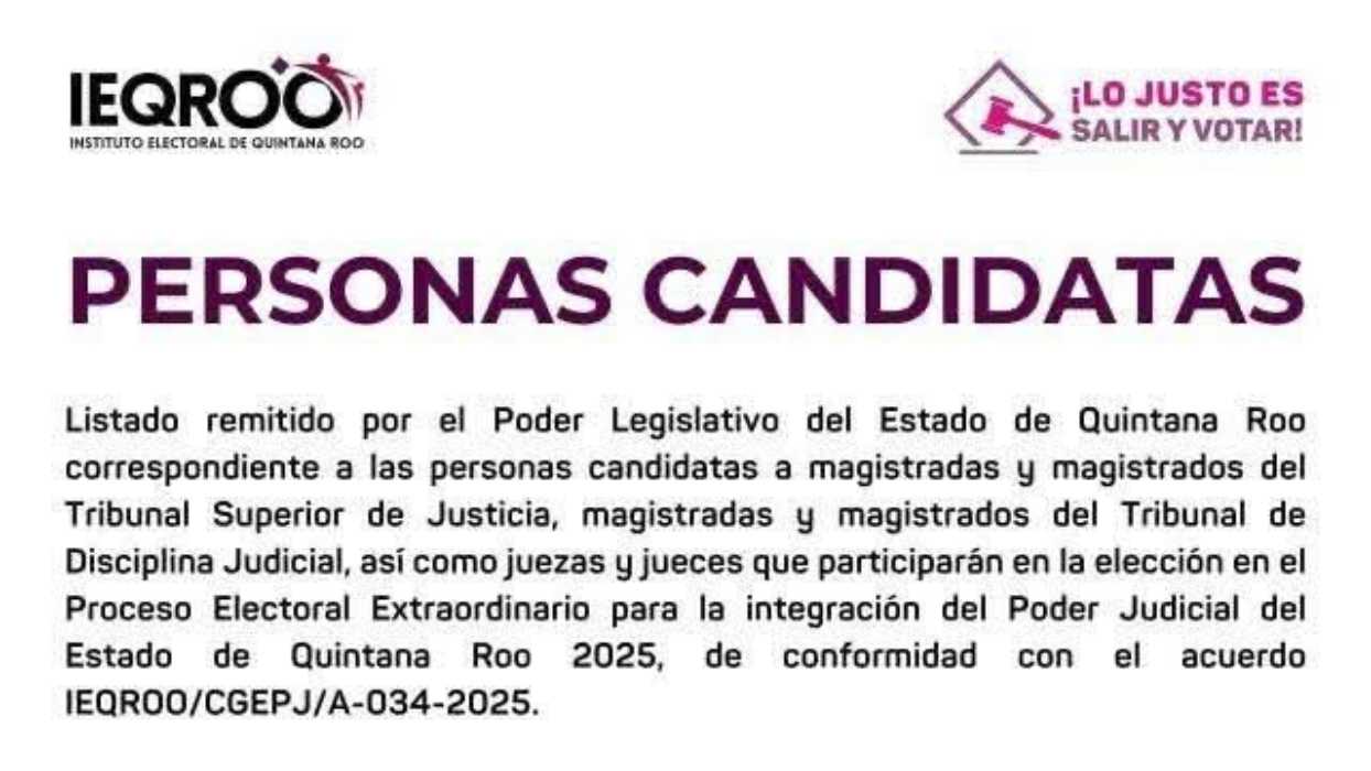 EN EL ARRANCADERO PARA COMPETIR EN LA ELECCIÓN JUDICIAL: Publica el Ieqroo lista de candidatos a cargos de magistrados y jueces en Quintana Roo